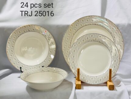 طقم الكلاسيك العاجي 24 قطعة 6 اشخاص (TRJ 20020) مع مفرش سفره هدية